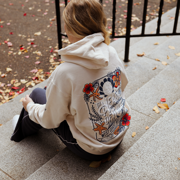Show your love for the game and the coast with our Heart Of It All hooded sweatshirt. Featuring a bold back graphic with tropical florals, starfish, and a volleyball centerpiece, this hoodie captures the laid-back energy of the West Coast.